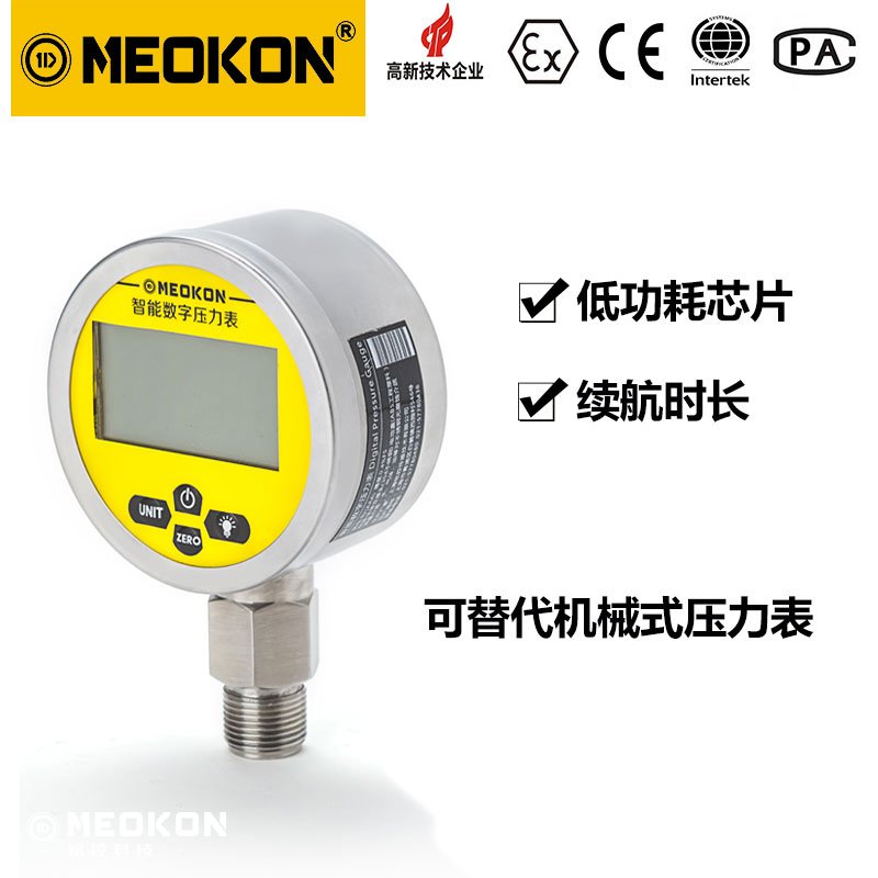 隔膜數(shù)字壓力表可以根據(jù)不同的被隔膜壓力表測腐蝕介質(zhì)選取不同的膜片材料,以達到最好的耐腐蝕性。